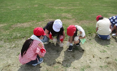 全校草引きでは,芝生の近くを担当しました。しっかりと根をおろした雑草で1つ抜くのにとても時間がかかりましたが,根気よく引いていました。