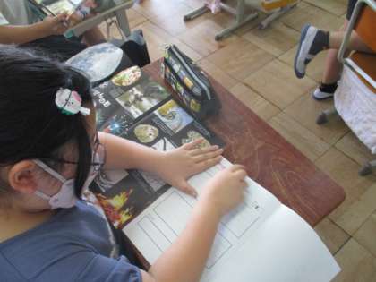 図工の学習で教科書に載っている「自然の形」を見ながら,気に入った作品を選んで,どんなところが気に入ったのか,どんな感じがしたのかなどプリントに書きました。自然の不思議な形を見ながら,みんな驚いたり不思議がったり感動したりしていました。また,図工の教科書を見てみてください。