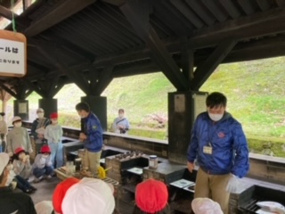 山の家の方から、安全面と火おこしの仕方をレクチャーして頂きました。