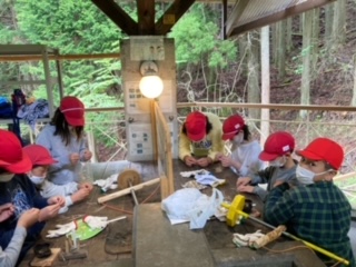 みんなで協力して火おこしを頑張っています。