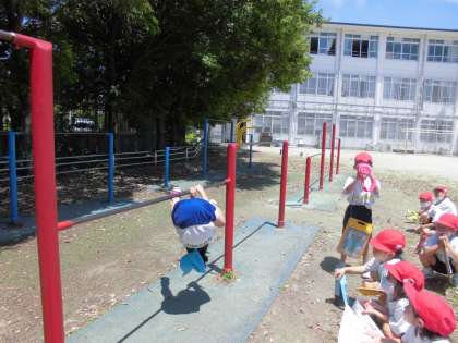 「〇〇さんは,ちきゅう回りが上手だよ。」