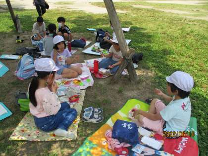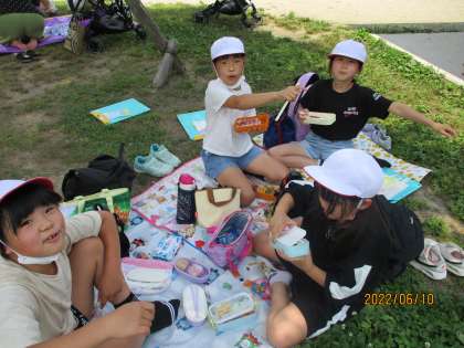何日も前からお弁当を楽しみにしていた3年生。友達と仲良くニコニこ食べていました。