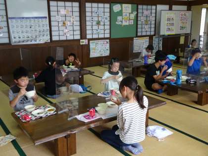 食の指導の後は,いろりの間で給食を食べました。いつもと違う雰囲気でおいしくいただきました♪