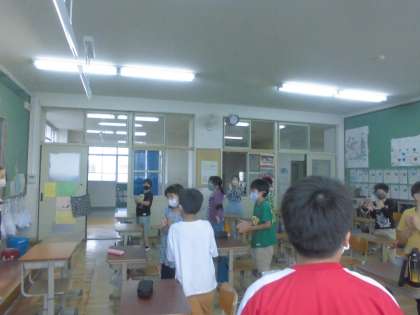 今日の上里トークタイムでは,先生の指示に従って体を動かすゲームをしました。