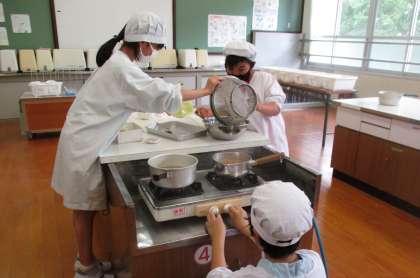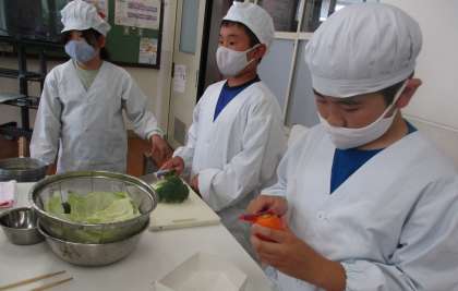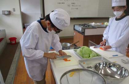 今日は2組で調理実習があり,ゆで野菜サラダを作りました。前回と野外炊事の経験しているので,お湯を沸かしたり,野菜を洗ったりを最初にするなど,段取りをしっかりと考えて調理に取り組んでいました。
