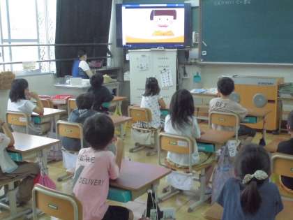 歯磨きについての絵本で,子どもたちは,自分の歯磨きの仕方を思い出しながら聞いていました。