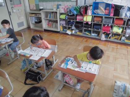 その中で気に入った色を使って,魚のうろこをぬっていきました。