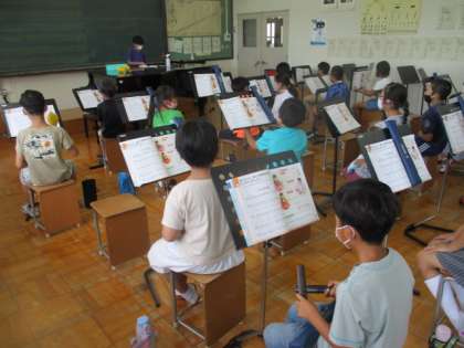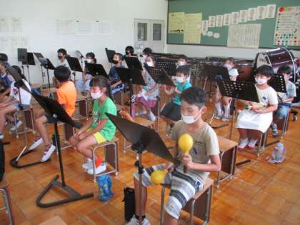 音楽の学習で「いろんな木の実」という曲を歌ったりリズムをとったりしていました。今日は,音楽室に行ってギロ・クラベル・マラカスの3種類の打楽器を使って演奏しました。打楽器の数に限りがあるので,順番交代で使い,打楽器を持っていない人は,歌を歌いました。難しいリズムもありましたが,みんな楽しそうに演奏していました。