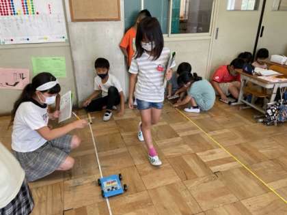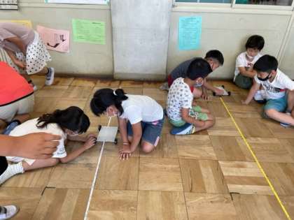 「伸ばし方を変えると動き方は変わるのだろうか。」という学習問題を設定し、みんなで協力して実験をしました。