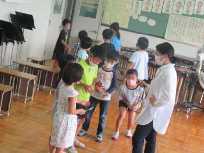 今日は、たてわりグループの仲間と校内オリエンテーリングをして楽しみました。協力しながらいろいろなゲームやクイズに挑戦して、グループの仲を深めました。6年生は、それぞれのグループのリーダーとしてみんなを引っ張っていこうとする姿もたくさんみられ、声を掛け合いながら過ごしていました。みんな大切な上里小の仲間です。どんどん仲を深めてほしいですね。