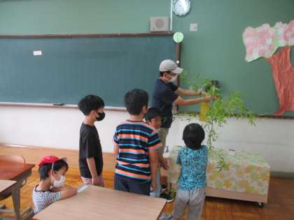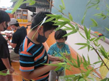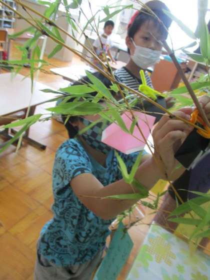 今日までに用意してきた飾りをモールを使って飾っていきました。