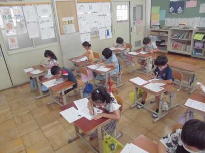 書写の学習では、フェルトペンでカタカナを丁寧に書くことに挑戦しました。