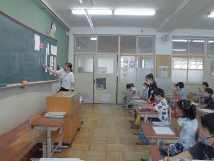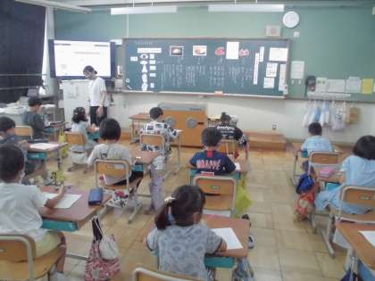 今日は栄養教諭の宮本先生と食の学習をしました。