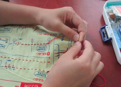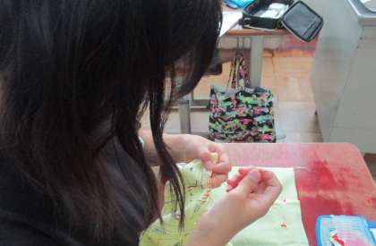 今日は、かがりぬいをした後、小物づくりに入りました。