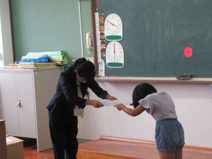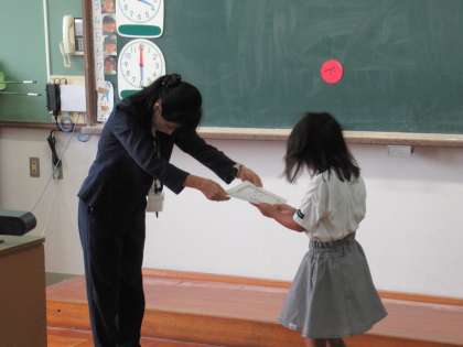 今日の朝会で、硬筆書写展と京都市小学生作品展の表彰がありました。