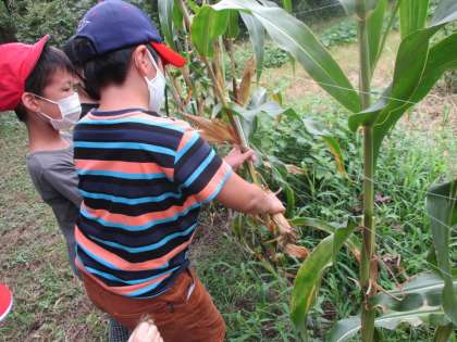 今日は夏休み前に植えていたトウモロコシを収穫しました。