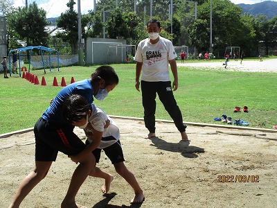 低い姿勢で取り組むなど、先生の指導を受けながら練習しました。友だちの応援もあり、熱心に取り組んでいました。