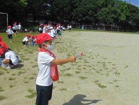 「めっちゃ遠くまで飛ぶやん!」「水が当たって倒れた!」