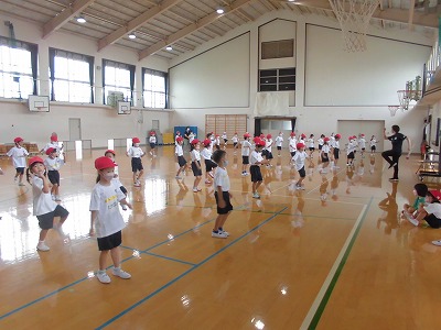 手や足の動きを,お手本をよく見て踊っていました。
