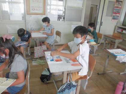 細かいところもはみ出さないように丁寧に塗っている様子や,色を1色だけでなく,いくつか混ぜている様子など,4年生になって絵の具の塗り方にも工夫がみられていました。