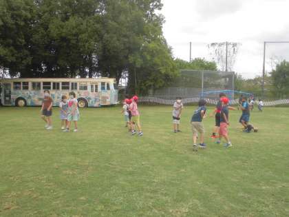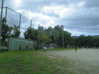 強い風がふいていましたが,子どもたちは元気に鬼ごっこをしたり,サッカーをしたりしていました。