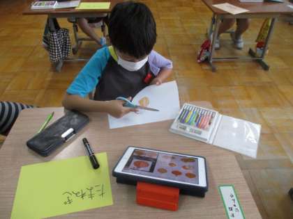 パソコンや図鑑を使って、野菜の特徴をしっかりと調べながら、丁寧に看板を作っていくことができました。