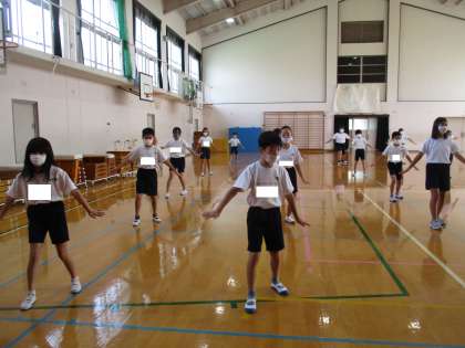 学年で表現運動の練習を始めました。手を伸ばしたり、ステップとそろえたり、ターンをそろえたりするなど、細かいところにも気をつけて踊りました。どんどん踊りがそろってきてかっこよくなってきました。