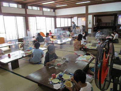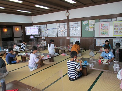 今日は、1組がいろりの間で給食を食べました。久しぶりのいろりの間なので、とても楽しみにしていました。