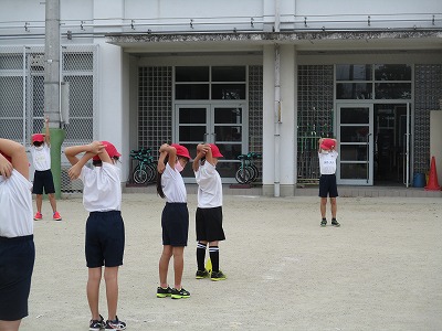 最初の開会式の練習では、運動委員会の人が前で準備体操のお手本をしてくれました。全体の場で大きな声で号令をかけるのは、大変そうでしたが、はずかしがらずにやっていました。