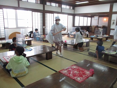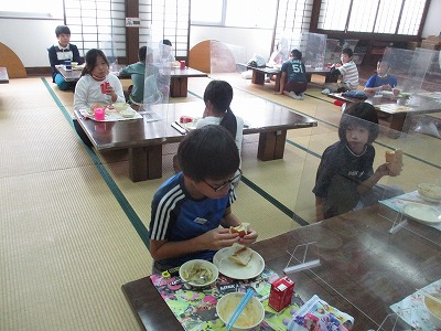 今日は2組がいろりの間で給食を食べました。5年生になって初めてなのでとても楽しみにしていました。