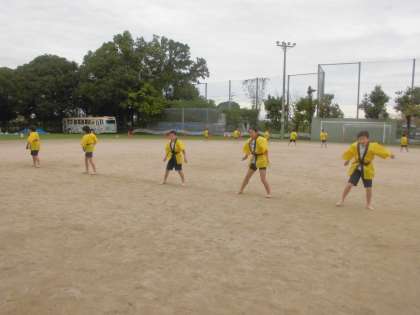 今日は,リハーサル前の最後の練習ということで本番と同じようにはっぴを着て踊りました。太鼓の音に合わせて走り,メリハリをつけて踊ることができました。