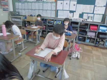 後半の時間では,ハングル文字を使って自分の名前を書き,友だちと見せ合っていました。