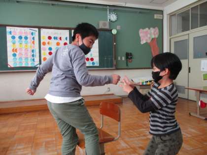秋の動物や物になりきって動きながらの椅子取りゲームでした。