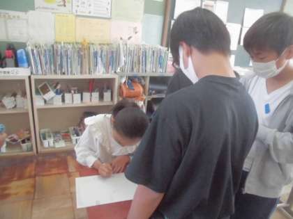 やまなしのあらすじを考えるために、文章の叙述を絵に表しました。休み時間にもやまなしについて、楽しく話し合っていました。素敵でした。