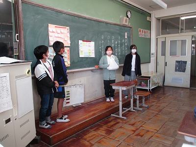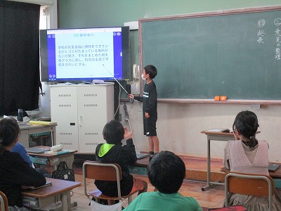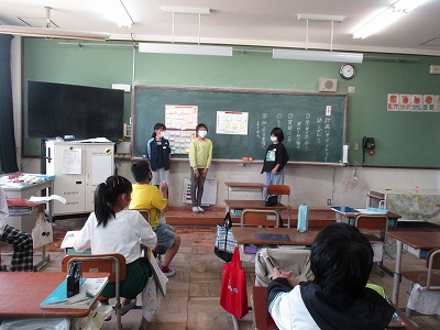 国語の学習で、「上里小学校クリーンキャンペーン〜学校も心も美しく〜」「きれいで清潔な上里小学校にするために」をテーマに各グループで話し合いました。共通する意見を確認したり、少数意見だけどいいなと思ってグループで話し合ったりしたことを発表し合いました。質問や感想を言い合い、取り組むことが少し明確になってきました。