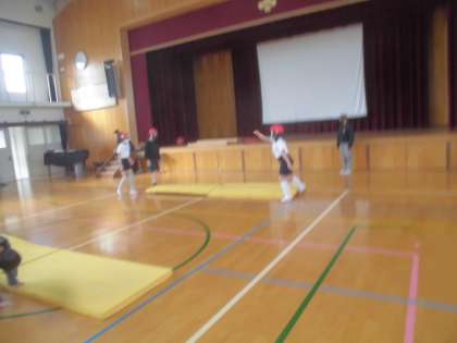マット運動を始めました。準備や片づけを班で協力して頑張りました。準備体操は、班でやりました。それぞれが次の運動につながる準備をしました。映像をみたり、ポイントをホワイトボードで見たりして考えて活動をしていました。