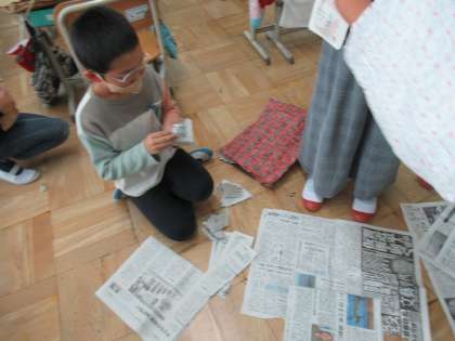 「くしゃくしゃぎゅっ」の学習をしました。