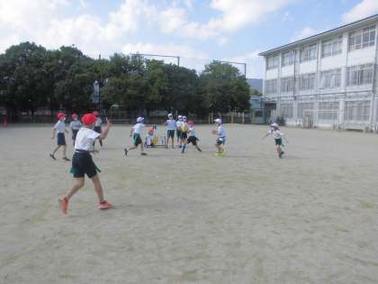 子どもたちはタグラグビーの流れにも慣れ,自分から考えていろいろな動きができるようになってきました。