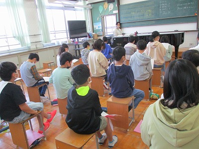 音楽の授業の様子です。5年生は歌を歌うのも大好きです。