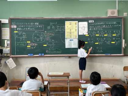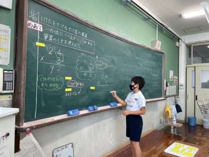 算数では「1けたをかけるかけ算の筆算」の学習を始めています。