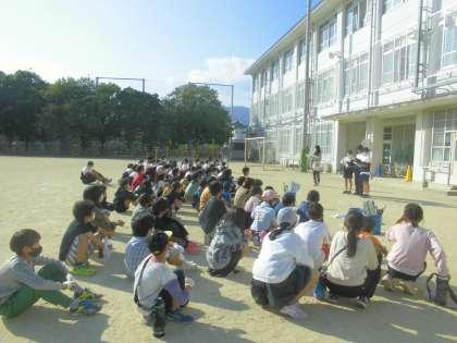 初めに,運動場に集まってあいさつをしました。