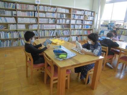 国語の学習で,毎週図書室での読書に親しんでいます。