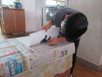 画用紙で紙版を作り、黒色で刷ります。