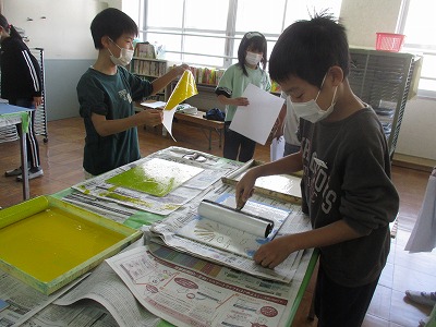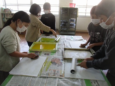 5年生 図工 ほり進めて 刷り重ねて2