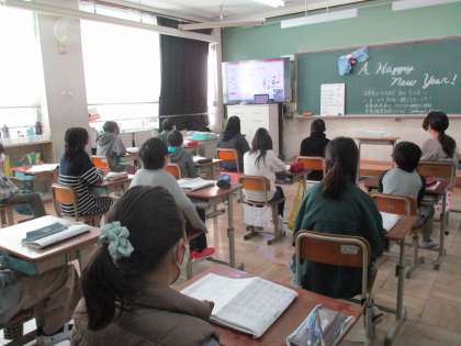 3学期が始まりました。オンラインでの始業式でしたが、礼をしたり、画面をしっかりとみて話を聞いたりするなど、礼儀正しく臨むことができました。