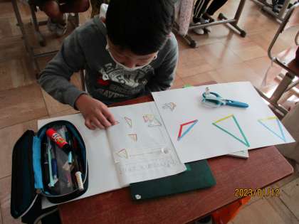 今日は、いろいろな三角形を、辺の長さに注目して仲間分けをしました。