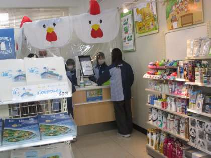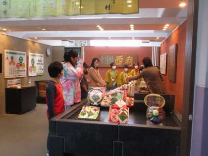 各ブースごとにどんな仕事をしているかの話を聞いた後、ローソンと西利では、お客さんと販売員とに分かれて接客・レジの業務を体験しました。みんな制服が似合っていました。