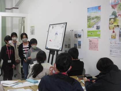 京都市役所では、地域住民が楽しめる新たな公園の計画をグループごとに話合い、計画図を作成し、提案していました。