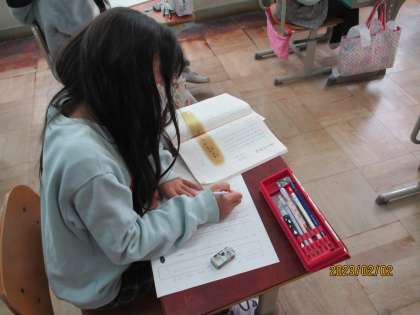 ウイルソンの研究の進め方や、ありが行列を作る仕組みを読みとり、感じたことをまとめていきます。もっと知りたくなったことがある子たちもいるようです。