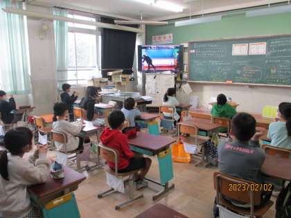 節分の話や学校アンケートの結果など、一生懸命聞いていました。